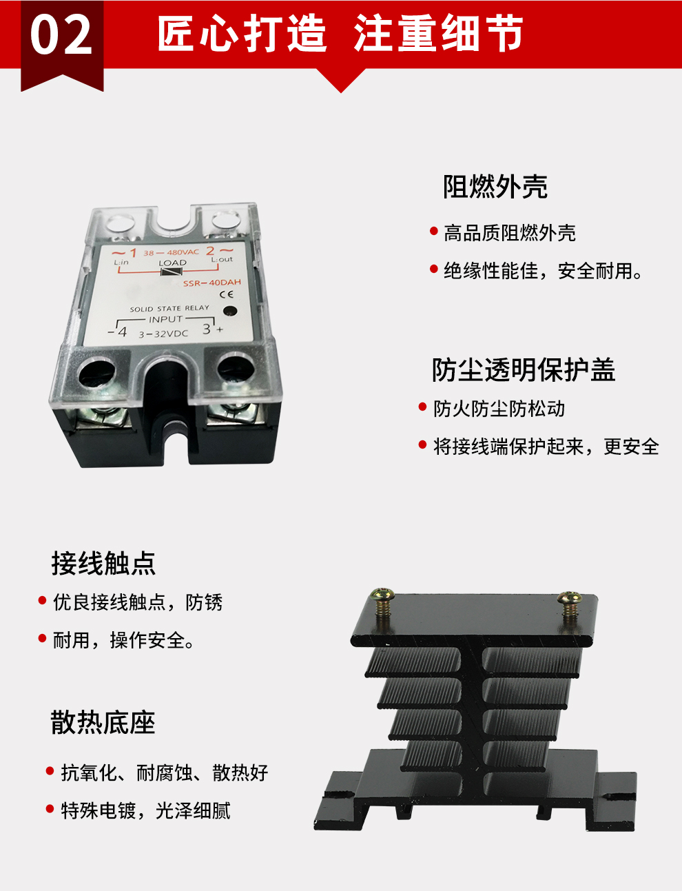 OHR-SSR固態(tài)繼電器尺寸小巧,內(nèi)置壓敏電阻及阻容吸收回路,具有吸收電網(wǎng)尖峰電壓抗干擾能力??赏ㄟ^動作指示燈來檢查工作狀態(tài),寬電壓輸出,可達(dá)到AC38-480V,低觸發(fā)電流小干8mA。