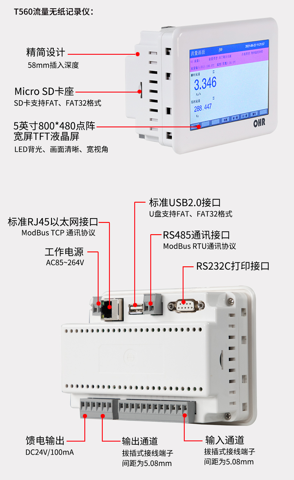 OHR-T系列觸摸屏流量無(wú)紙記錄儀