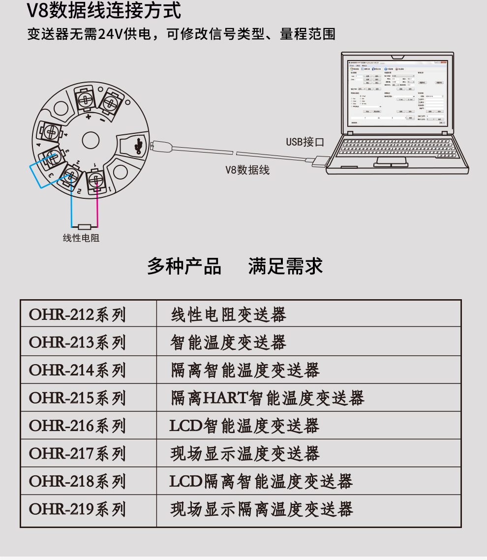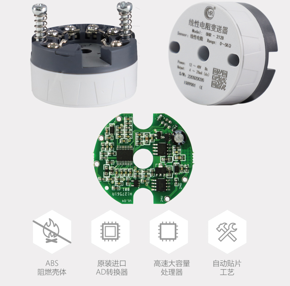 OHR-212線性電阻(磁翻板)變送器,用于線性電阻信號(hào)輸入,二線制4~20mA模擬輸出,安裝于傳感器內(nèi)部(Form B)。