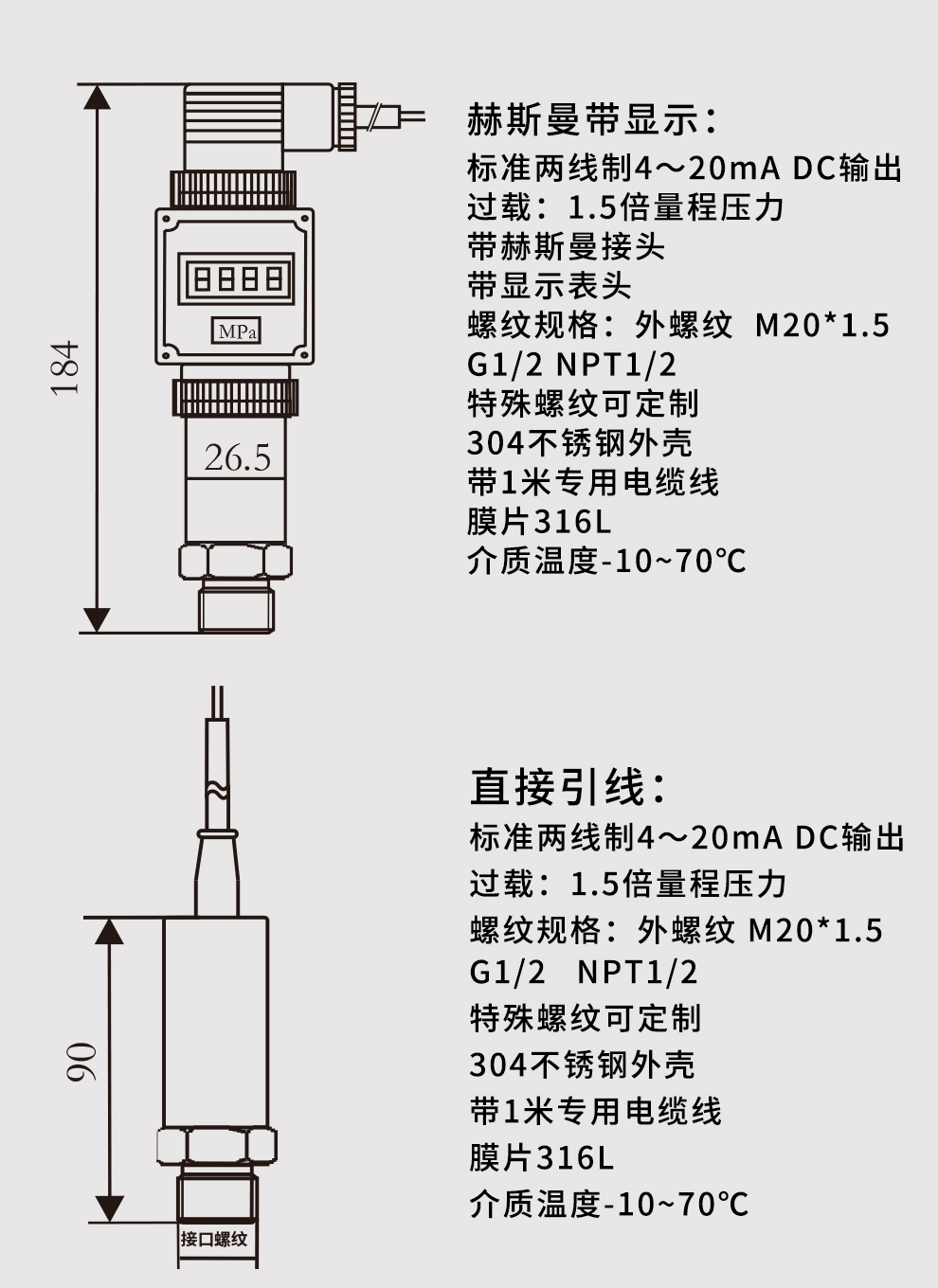 虹潤(rùn)公司是專業(yè)生產(chǎn)壓力變送器的國(guó)家專精特新“小巨人”企業(yè),生產(chǎn)的小巧型壓力變送器,具有采用進(jìn)口芯體,量程范圍寬,抗沖擊抗震動(dòng),多種螺紋接口,性能穩(wěn)定等特點(diǎn)。產(chǎn)品獲得一種數(shù)字顯示低功耗壓力表、一種信號(hào)發(fā)生器裝置等2項(xiàng)國(guó)家發(fā)明專利,主持起草工業(yè)過程控制系統(tǒng)用模擬輸入兩位或多位輸出儀表、工業(yè)過程測(cè)量和控制系統(tǒng)用壓力/差壓變送器等2項(xiàng)國(guó)家標(biāo)準(zhǔn),通信系統(tǒng)多通道數(shù)據(jù)采集控制終端規(guī)范軍用標(biāo)準(zhǔn),以及現(xiàn)場(chǎng)設(shè)備集成等5項(xiàng)智能制造國(guó)家標(biāo)準(zhǔn),參與國(guó)際5G標(biāo)準(zhǔn)制定,取得數(shù)顯壓力表等2項(xiàng)相關(guān)軟件著作權(quán)。產(chǎn)品廣泛應(yīng)用于化工、食品、制藥、電力、設(shè)備配套、供暖、水處理、樓宇等行業(yè),需精準(zhǔn)測(cè)量流體壓力的現(xiàn)場(chǎng)。