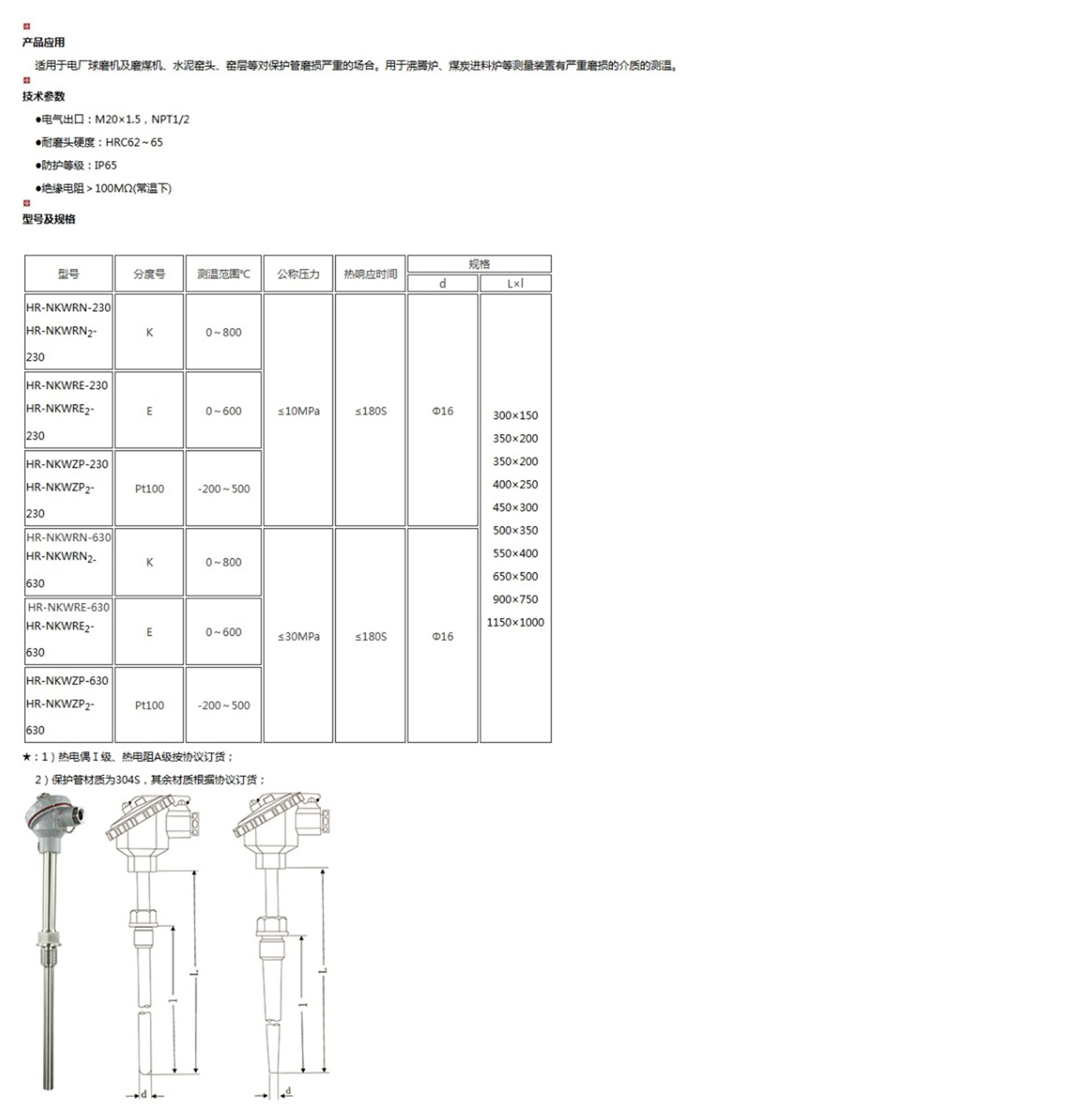 耐磨熱電偶(阻)采用等離子噴漆技術(shù)、高鉻鑄鐵和高溫合金不同材料制成的耐磨保護(hù)管,專門為高、中、低溫耐磨環(huán)境的測(cè)量場合設(shè)計(jì)制造的,可適用于循環(huán)流化床、沸騰爐、水泥回轉(zhuǎn)窯尾煙室
