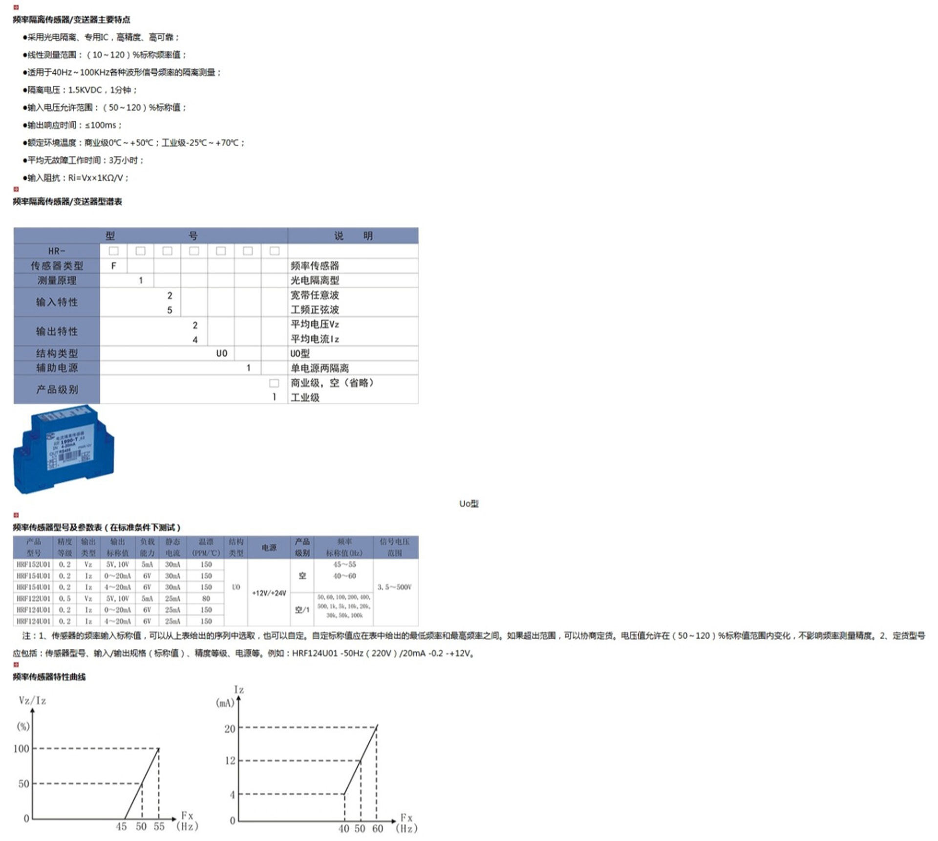 頻率隔離傳感器/變送器是指被測交流電壓頻率隔離轉換成按線性比例輸出的單路標準直流電壓或直流電流。